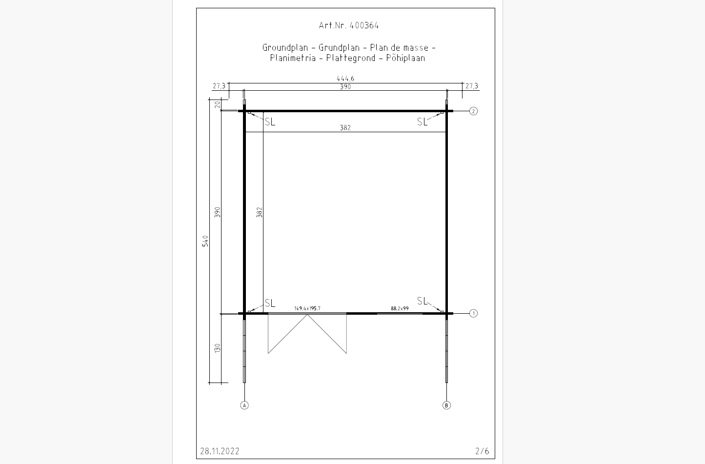 (Das Gartenhaus kann auch spiegelverkehrt aufgebaut werden)