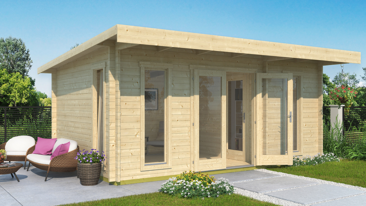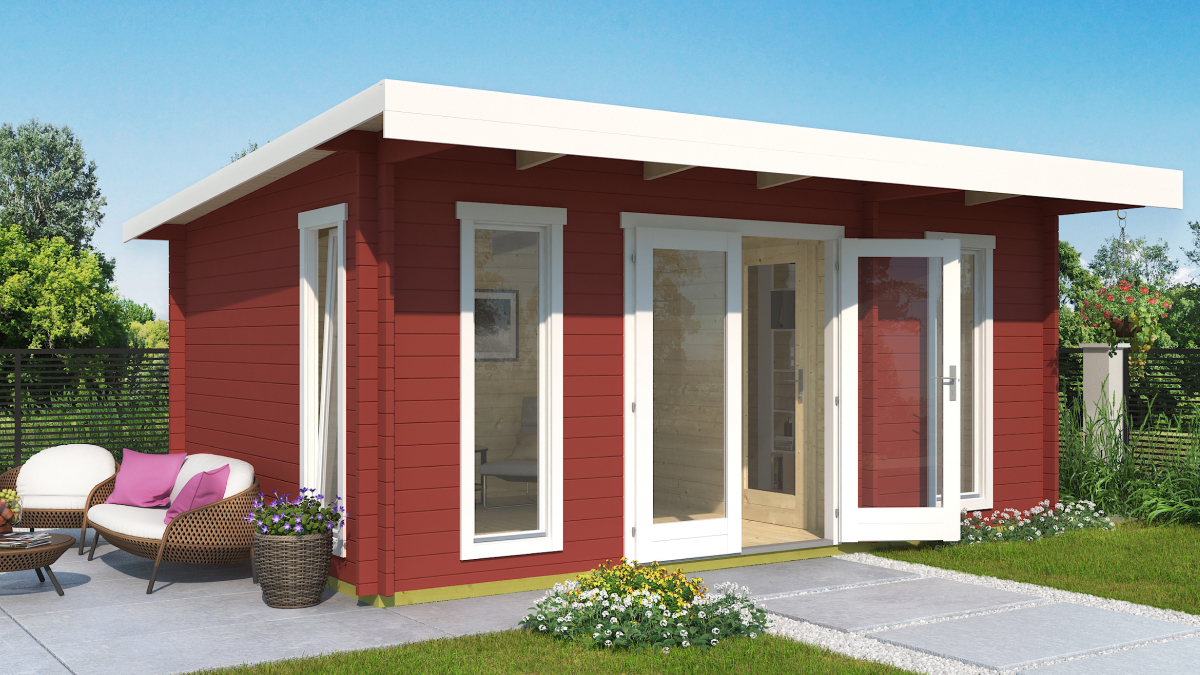Barbados 4 ist ein modernes, geräumiges Gartenhaus Barbados mit zwei Räumen, ideal für Outdoor-Leben, Wellness, Werkstatt oder Büro. Sein elegantes Design und die praktische Raumaufteilung erfüllen multifunktionale Anforderungen.