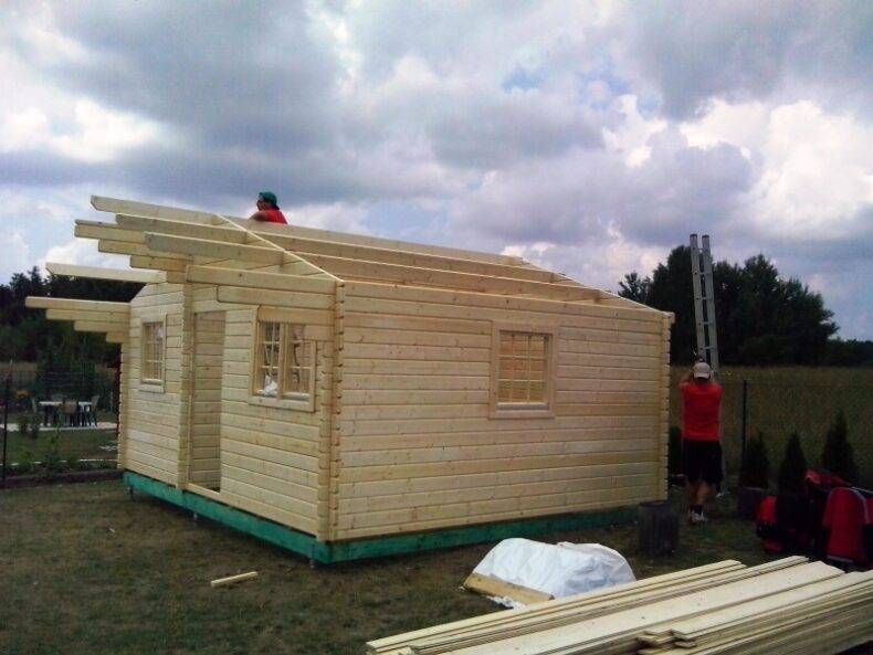 Transport: Die meisten Hütten wiegen etwa 1300 kg und werden mit Autos bis 3,5 Tonnen transportiert. Bei größeren Hütten über 25 m2 erfolgt der Transport mit Fahrzeugen bis 7 t. Das Haus wird auf einer Palette verpackt und manuell abgeladen. Dies dauert im Durchschnitt 30 Minuten und es wird keine Technik für das Abladen benötigt.