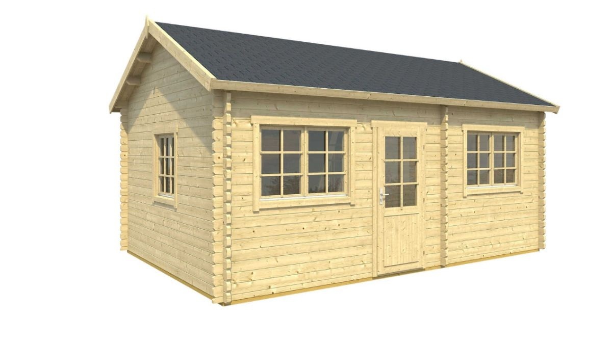 - Das Satteldach mit einer Neigung von 25,4° verleiht der Hütte ein traditionelles Aussehen und sorgt für einen effektiven Wasserabfluss.