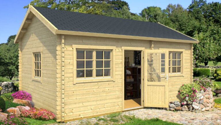 - Das Dach mit einer Fläche von 26,63 m² ist für die Verlegung von Schindeln oder anderem Material Ihrer Wahl vorbereitet (Dachpappe und Schindeln sind nicht enthalten).