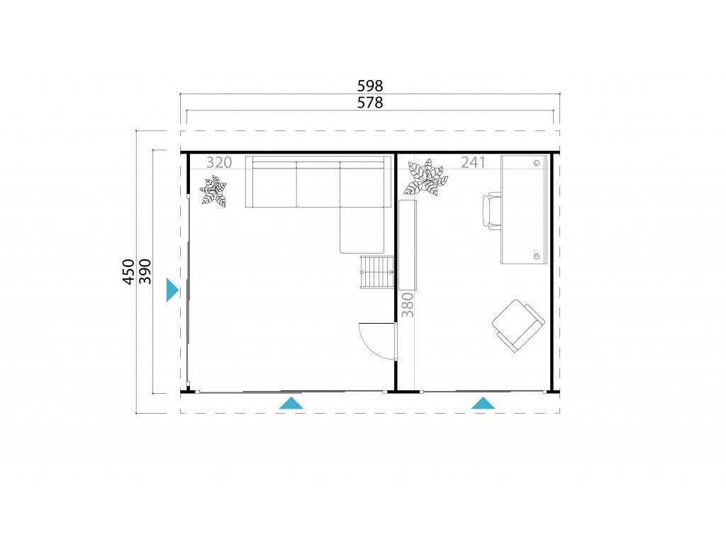 Auf Wunsch kann der obere Bereich über die gesamte Grundfläche des Gartenhauses erweitert werden.