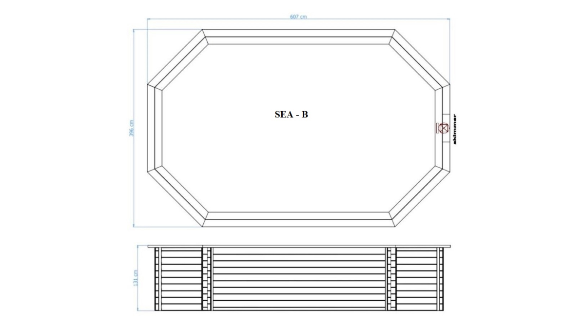Freizeitpool Sea-B in länglicher Form mit stilvollen Eckwänden abgeschlossen. Es handelt sich um einen vollwertigen Pool, ideal für tägliche sportliche Aktivitäten sowohl für Sportler als auch für Freizeitschwimmer. Mit seiner Länge von 607 cm und der komfortablen Breite von 396 cm ist er bei einer Gesamthöhe von 131 cm bestens geeignet für tägliches Freizeit-Schwimmen. Das Poolgerüst besteht traditionell aus ausgewähltem skandinavischem Holz – Kiefer. Die klassische achteckige Form mit langen Seitenwänden bietet ausreichend Platz für Spaß und auch für Ihr Schwimmtraining. Auch der Preis bleibt sehr attraktiv – es handelt sich weiterhin um eine der preislich sehr ansprechenden Lösungen für das Schwimmen zu Hause.