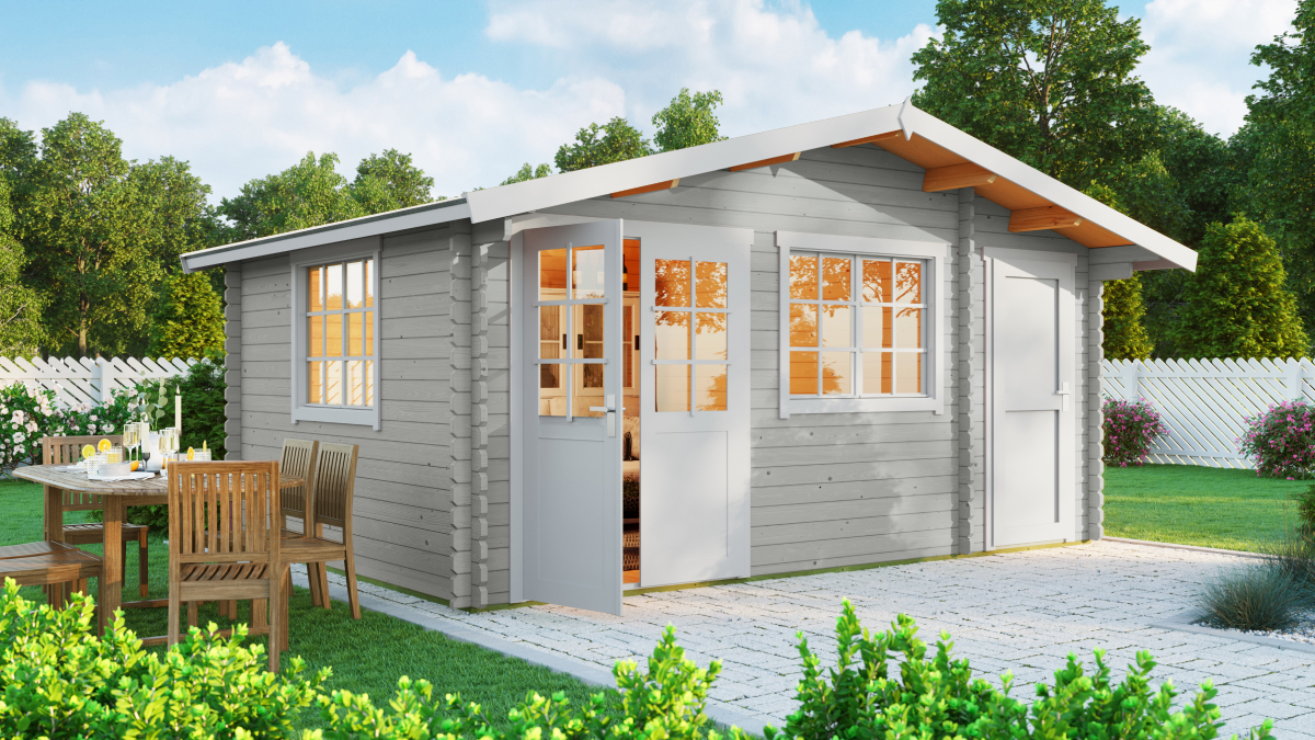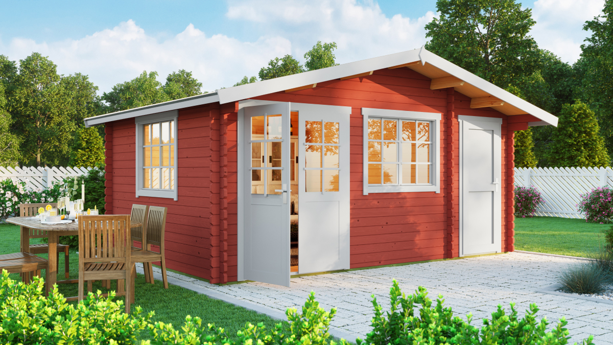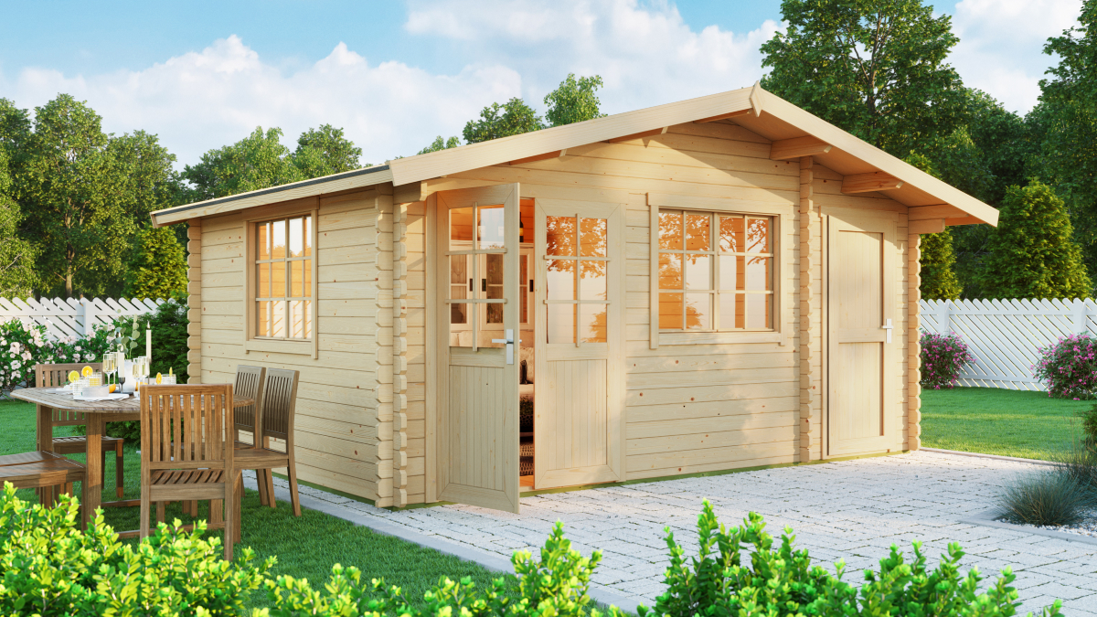 Gartenhäuser mit Abstellraum Borkum sind aufgrund ihrer Praktikabilität sehr gefragt. In der Ausführung mit 40 mm Wandstärke gehören sie zu den Produkten, die nicht nur eine hohe Verarbeitungsqualität bieten, sondern auch eine ästhetisch ansprechende Lösung für Gartenbauten darstellen. Die Materialstärke unterstreicht die Qualität dieses Produkts. Gartenhäuser mit Abstellraum Borkum passen hervorragend zu Ihrem Haus, Garten oder Ihrer Hütte. Das Haus bietet 18,22 m² Innenfläche, aufgeteilt in einen Abstellraum mit 4,6 m² für die Lagerung von Werkzeug, Fahrrädern und einen separaten Raum mit 14,3 m², ideal als Rückzugsort für Sie und Ihre Familie – sei es als Sommerküche oder als gelegentlicher Schlafplatz in den wärmeren Monaten.
