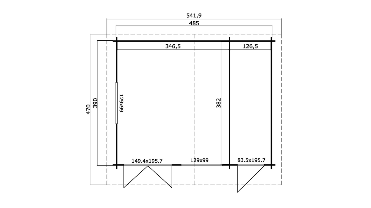 Zum Gartenhaus kann ein Anbau bestellt werden, der das Dach seitlich um 120 cm verlängert (auch nach Maß möglich).