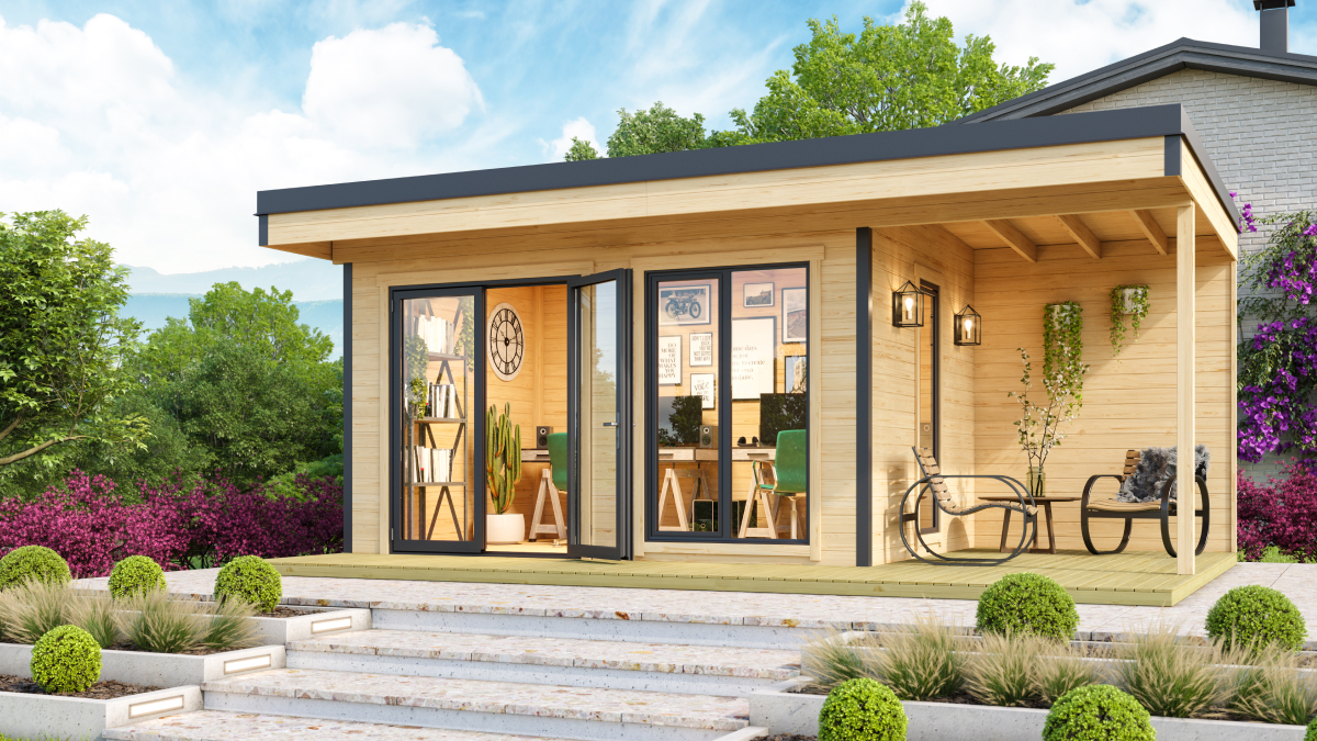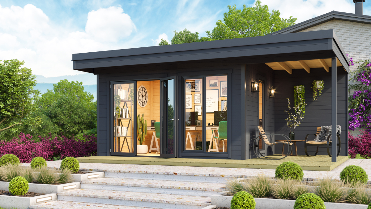 Gartenhaus CUBE Domeo 7 mit Überdachung – Varianten: