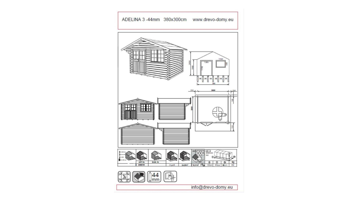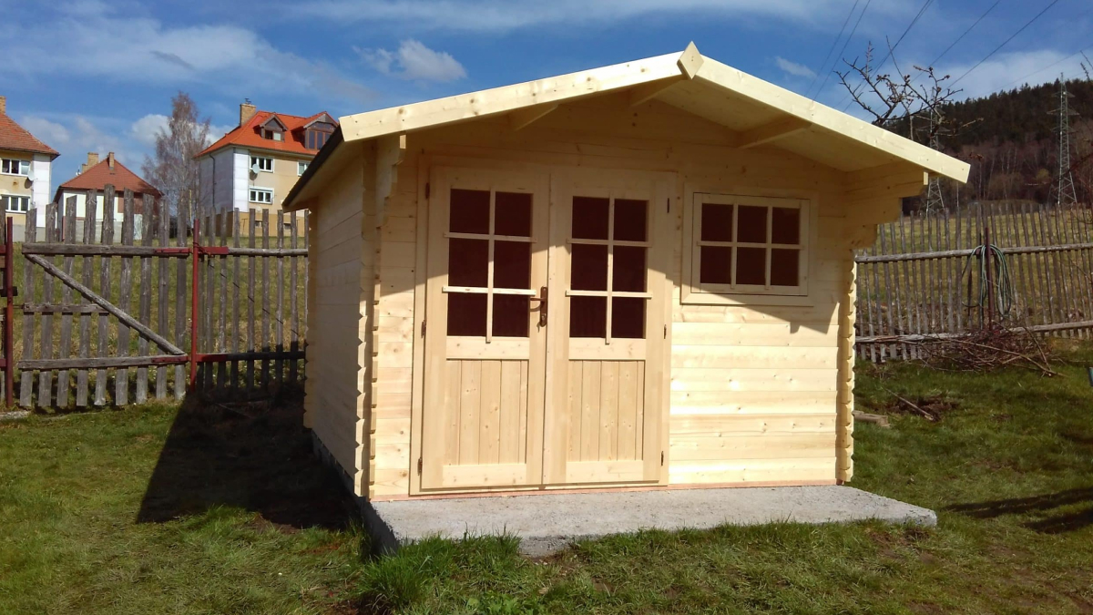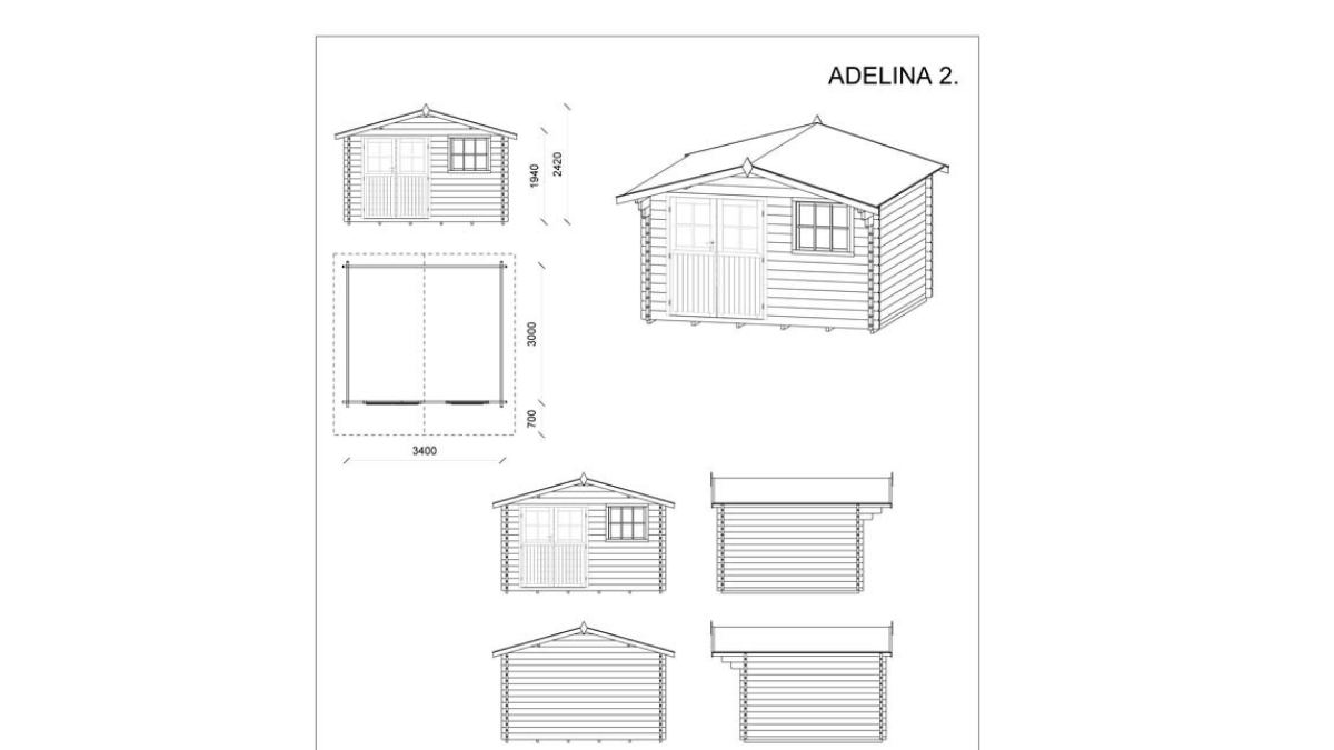 Gartenhäuser für Werkzeuge Adelina 2 und 3 sind unsere meistverkauften Modelle. Die Hütte bietet 10,2 m² bzw. 11,4 m² Innenfläche, die sich ideal als Sitzbereich, zur Lagerung von Bänken, Gartengeräten oder Poolzubehör nutzen lässt. Ein großer Vorteil sind die doppelflügeligen Türen, die einen bequemen Zugang und eine optimale Nutzung des Innenraums ermöglichen. Das Haus wird aus vorgetrocknetem nordischem Fichtenholz gefertigt. Zum Lieferumfang gehören Fenster, Türen, Beschläge, ein Boden sowie ein Schloss mit Schlüssel. Hütten liefern wir in 28-mm-Ausführung.