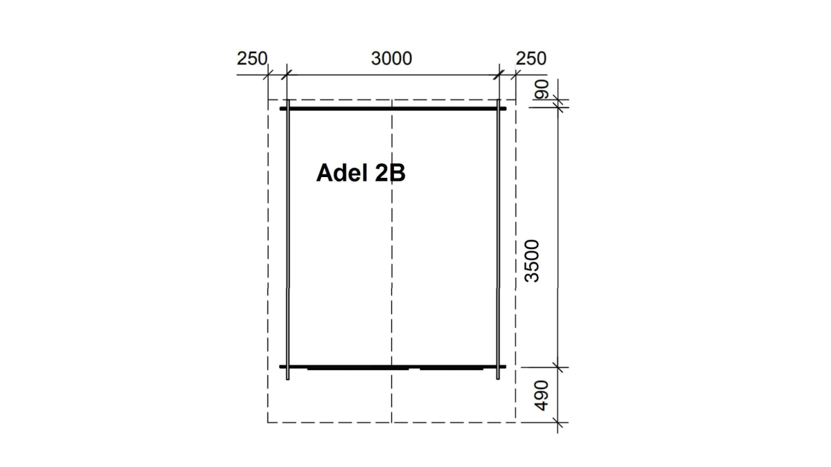 • Maße: 300 cm × 350 cm (10,5 m²) Adelina 2B