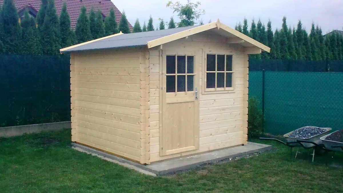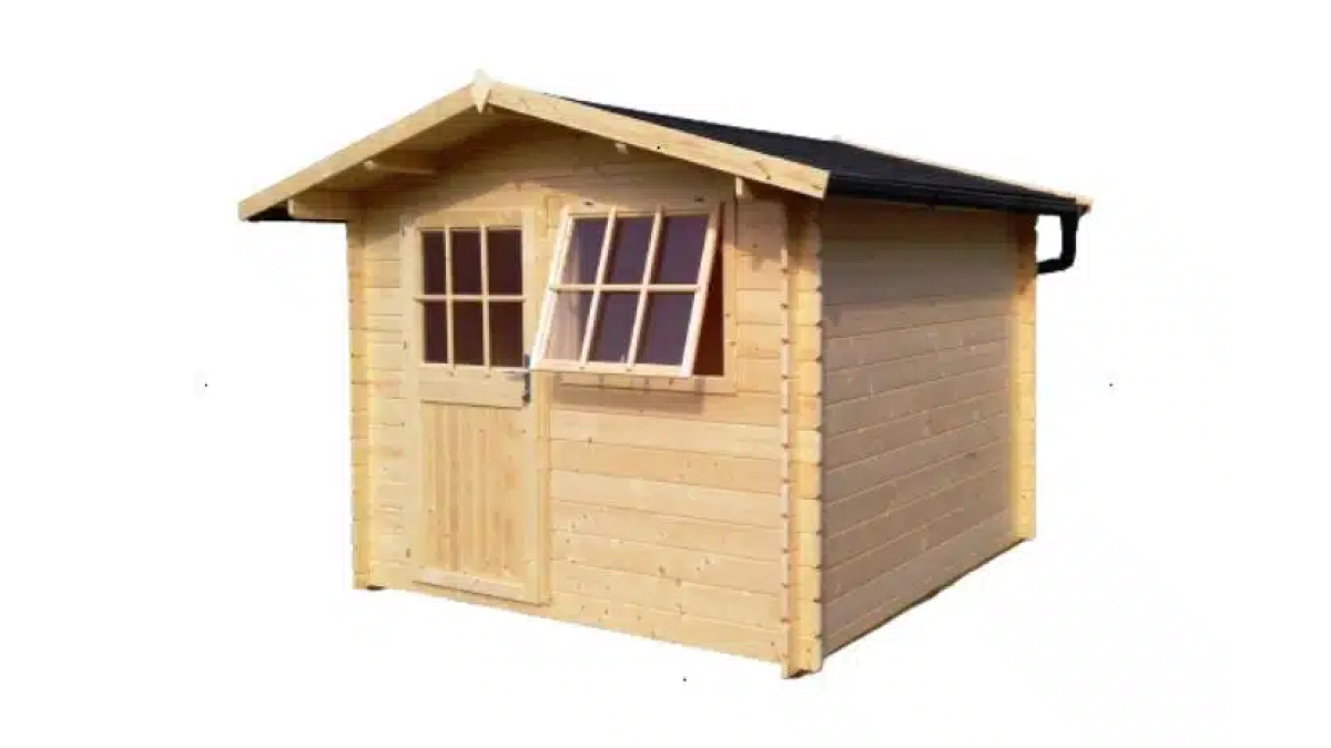 Adelína ist ein einfaches Gartenhaus mit Klappfenster und Doppeltür. Es handelt sich um die größere Version des Gerätehauses Melita.
