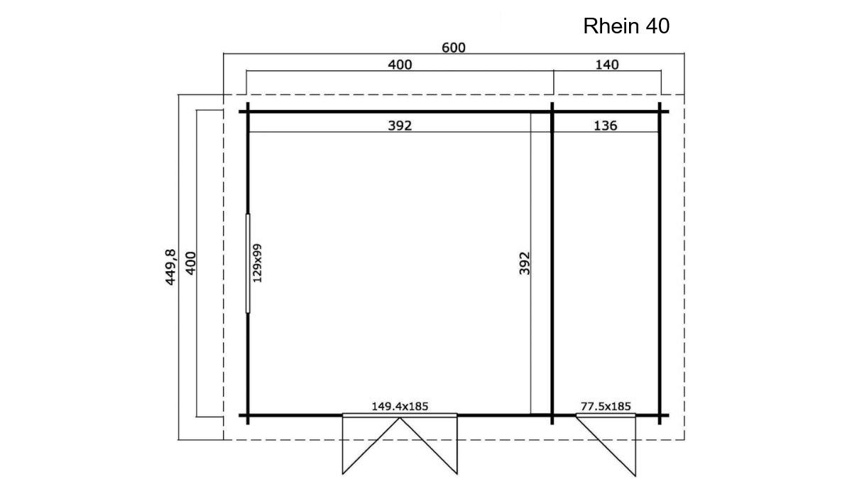 Rhein 40 ist ein geräumiges Gartenhaus mit Flachdach mit zwei Räumen und modernem Flachdach. Dieser vielseitige Raum ist ideal für Lagerung, Arbeit oder Entspannung. Mit seinem klassischen Design und der hochwertigen Verarbeitung ist es die perfekte Lösung für jeden Garten.