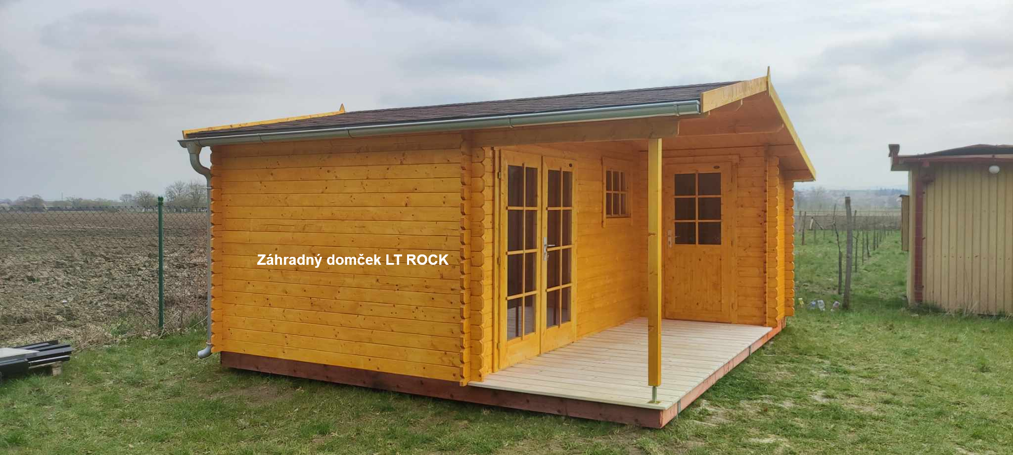 Zum Gartenhaus kann ein zusätzlicher Unterstand bestellt werden.