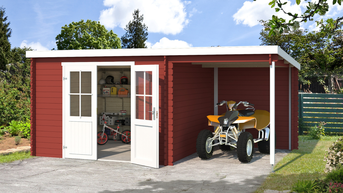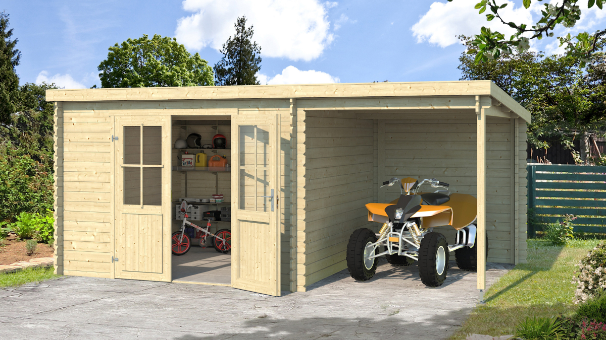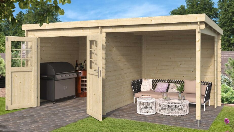 Auf unserer Website finden Sie auch weitere Varianten für Gartenhäuser mit Überdachung.