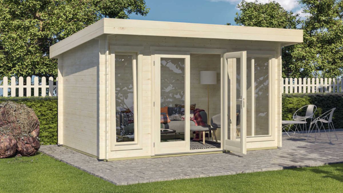 Cambridge 28 ist ein stilvolles und funktionales Gartenhaus mit Flachdach, das vielfältige Nutzungsmöglichkeiten bietet. Ob als Lagerraum, Home-Office oder Wellnessbereich – dieses Gartenhaus ist darauf ausgelegt, Ihre Anforderungen zu erfüllen.