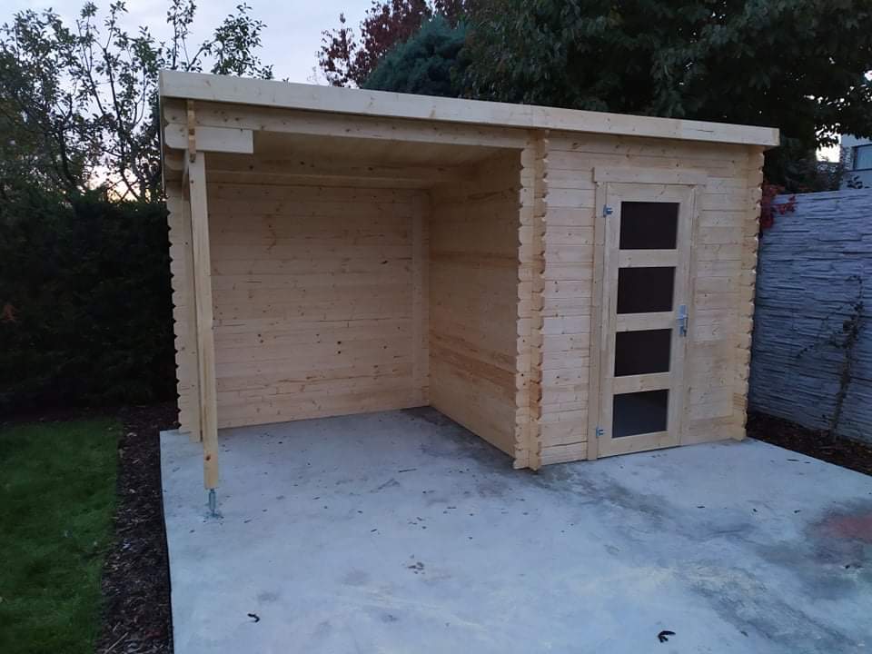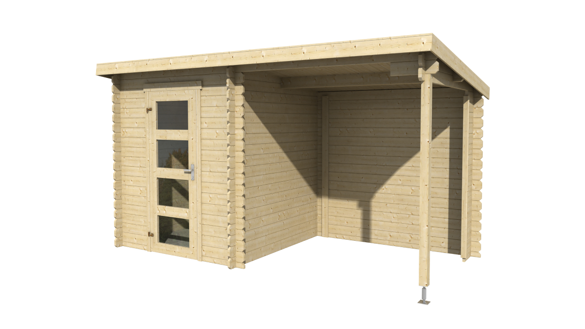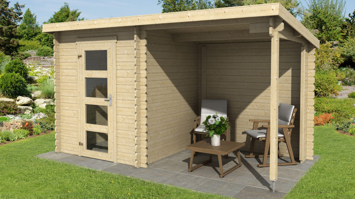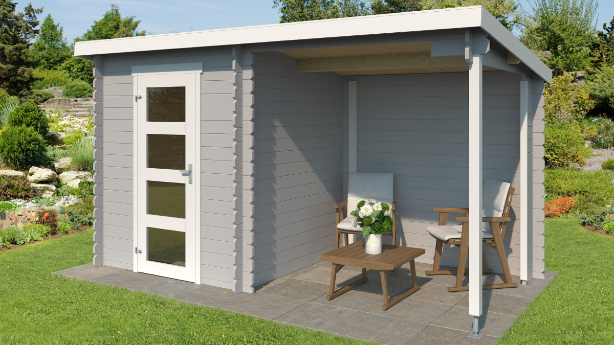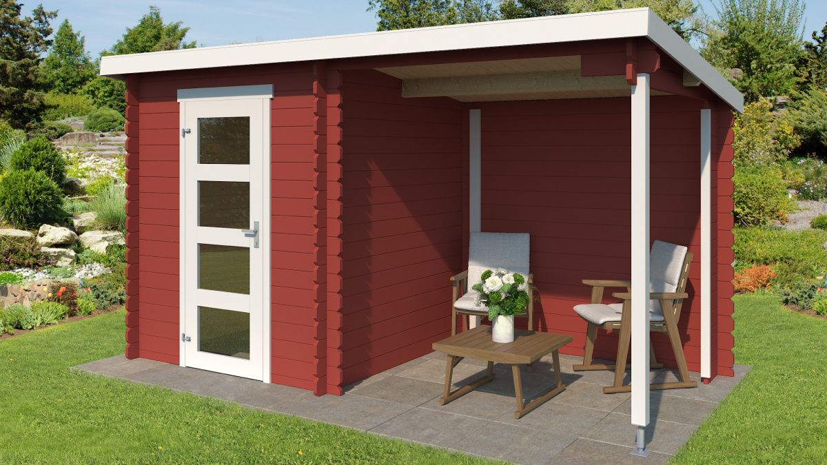 Gartenhaus mit Überdachung Jelle 175 Plus eignet sich ideal als kleiner Abstellraum mit Überdachung beim Haus. Dieses Gartenhaus bietet 2,9 m² Innenfläche, die zur Lagerung von Material, Werkzeug oder Gartenzubehör genutzt werden kann. Zusätzlich verfügt das Haus über eine Überdachung von 3,4 m² mit Rückwand. Der Überdachungsteil kann auch spiegelverkehrt montiert werden.