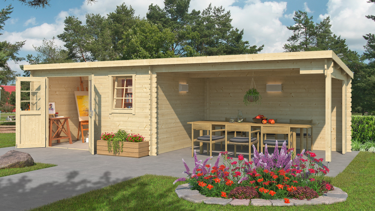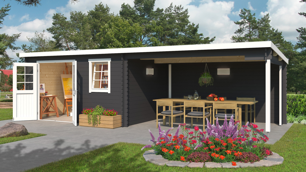 Das Gartenhaus mit Überdachung RENO ist die perfekte Wahl für alle, die eine funktionale, langlebige und stilvolle Lösung für ihren Garten suchen. Organisieren Sie Ihren Außenbereich mit diesem praktischen Modell!