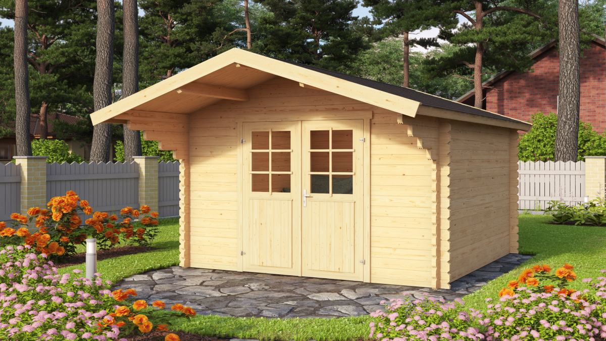 Das Gartenhaus Viljandi 34 ist ideal als Lagerraum für Ihr Zuhause, Ihren Garten oder Ihre Hütte geeignet. Die Hütte bietet 9 m² Innenraum, der sich ideal zum Sitzen, zur Aufbewahrung von Bänken, Gartengeräten oder Poolzubehör nutzen lässt. An der Vorderseite befinden sich ein Fenster und eine Tür. Die Wände sind 34 mm stark. Das Gartenhaus Viljandi wird aus vorgetrocknetem nordischem Fichtenholz gefertigt. Zum Lieferumfang gehören Türen, Beschläge und ein Schloss mit Schlüssel. Boden und Unterkonstruktionslatten sind nicht enthalten.