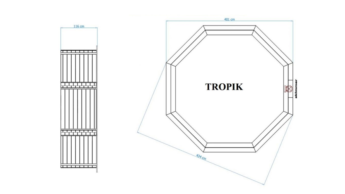 Gartenpool Tropik ist die größere Version des grundlegenden Holzpools S-JOY 355, diesmal in achteckiger Form, die eine praktische und kostengünstige Lösung für einen privaten Schwimmingpool darstellt. Der Pool bietet Platz für die ganze Familie und ist ideal für Gärten, Ferienhäuser und Einfamilienhäuser. Die einfache Installation erfordert keine Sorge. Jeder Heimwerker kann sie problemlos durchführen, es wird lediglich grundlegendes Werkzeug benötigt.