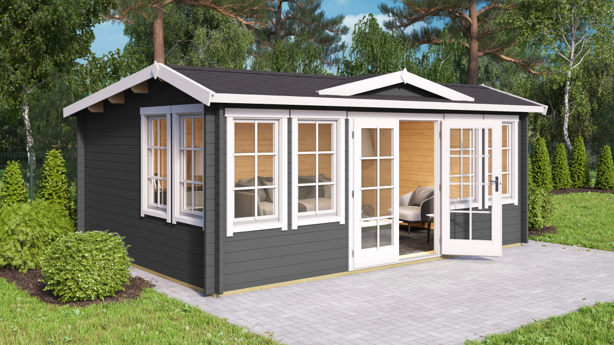 Verglaste Gartenhütte Balmoral ist ein geräumiges Gartenhaus in 44 mm Ausführung. Das Produkt bietet eine hohe Verarbeitungsqualität. Die 44 mm starken Wände sind eine besonders attraktive Lösung für den Gartenbau. Die Wandstärke ist ideal für die Größe der Hütte, die 20,1 m² Innenraum bietet. Dieses Gartenhaus verfügt über praktische Doppeltüren, die die Nutzung des Hauses erleichtern. Balmoral eignet sich hervorragend als Rückzugsort für Ihre Familie, aber auch als Sommerküche oder als gelegentlicher Schlafplatz vor allem in den Frühlings- und Sommermonaten. Die Hütte kann auch als saisonales Büro oder Verkaufsstand genutzt werden. Das Gartenhaus wird aus vorgetrocknetem nordischem Fichtenholz gefertigt. Zum Lieferumfang gehören Fenster, Doppeltüren, Beschläge, Boden, Schloss mit Schlüssel. Türen und Fenster sind mit Isolierverglasung ausgestattet!