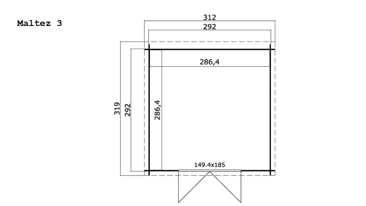 Innenmaße: 292 × 292 cm – optimale Raumnutzung.