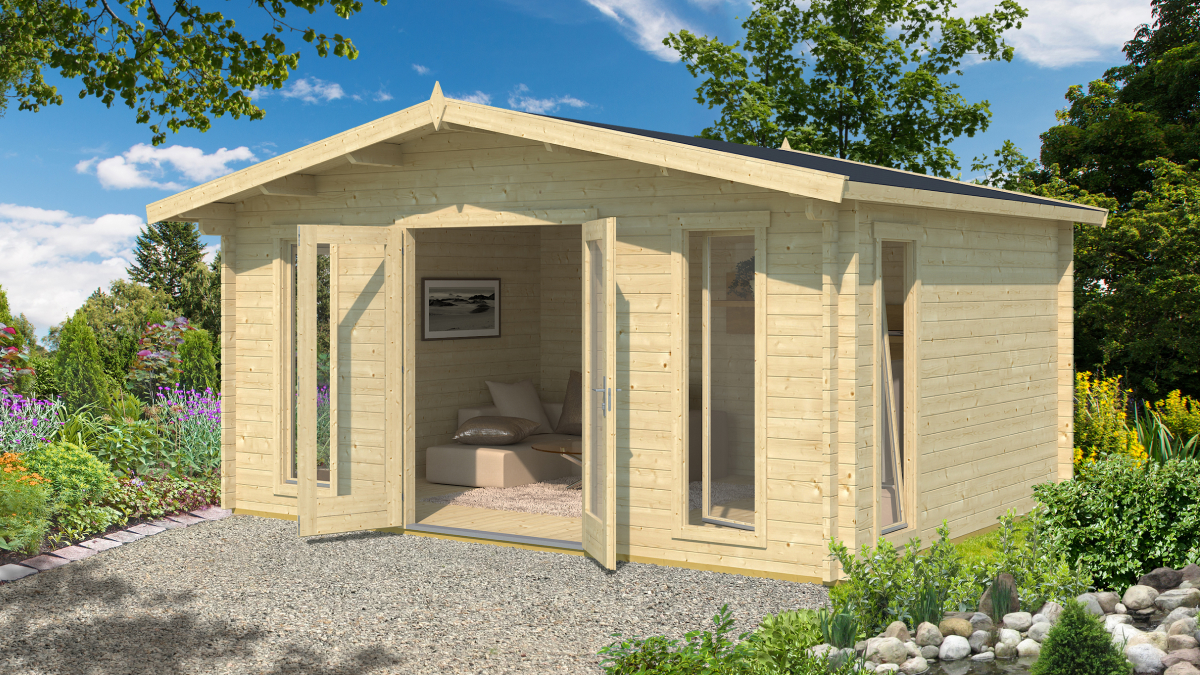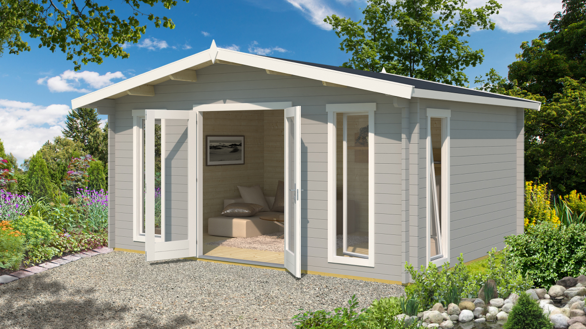 Holzgartenhütte Elgin SILBER ist eine Neuheit des Jahres 2021. Sie eignet sich nicht nur als Gartenhaus, sondern auch als Sommerbüro für Ihr Unternehmen. Große Fenster sorgen für ausreichend Tageslicht. Die Seitenfenster können auch spiegelverkehrt an der Rückseite der Seitenwände montiert werden.