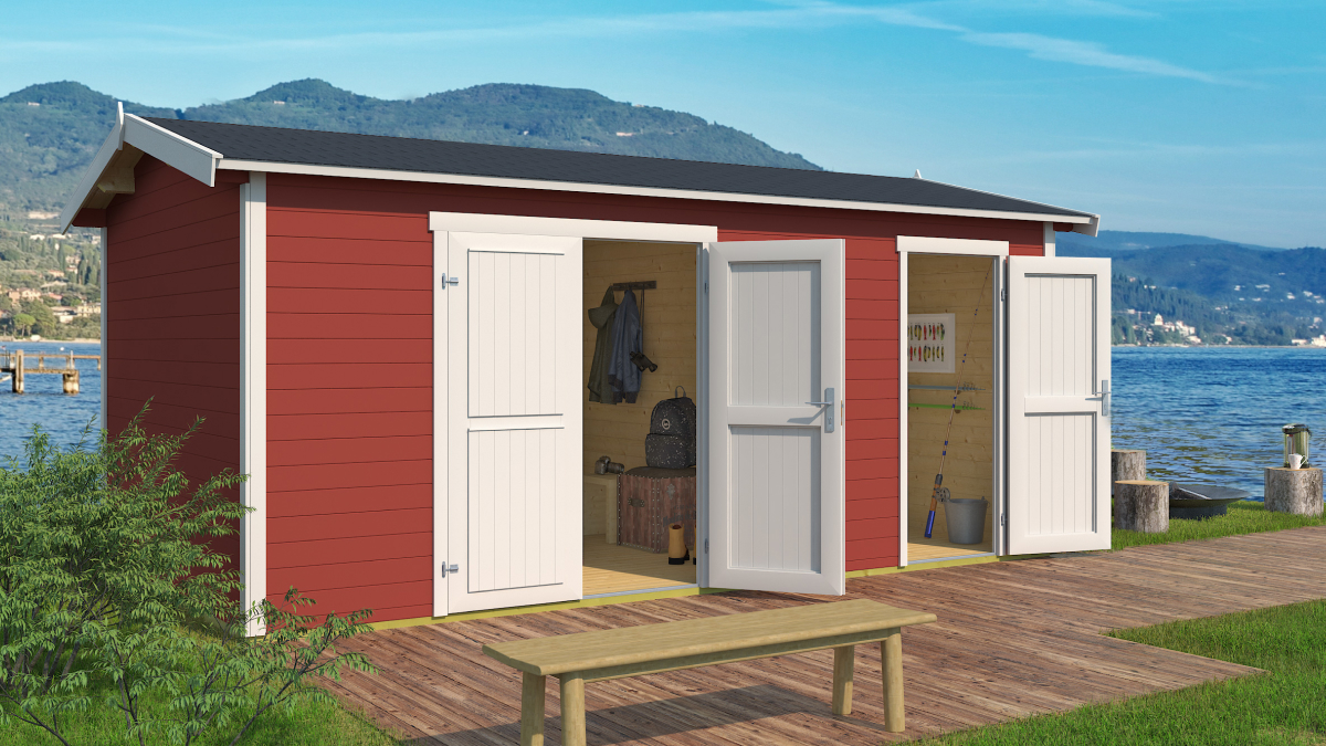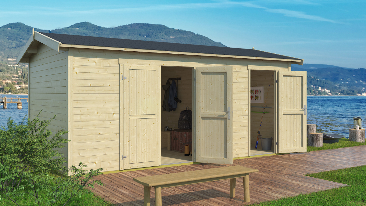 Holzlager Tuvalu XL gehört zu den Gartenhäusern, die wegen ihrer praktischen Nutzung sehr gefragt sind. In der 28-mm-Ausführung bietet es eine hochwertige Lösung zu einem erschwinglichen Preis. Die Hütten fügen sich perfekt an Ihr Haus, in Ihren Garten oder zu Ihrer Hütte ein. Das Haus bietet 14,5 m² Innenraum, aufgeteilt in zwei Abteile mit 4,9 m² und 9,5 m². Es eignet sich zur Lagerung von Materialien, Werkzeugen oder Fahrrädern. Das Holzlager Tuvalu XL ist eine praktische Lösung mit Doppeltüren, die die Handhabung erleichtern.