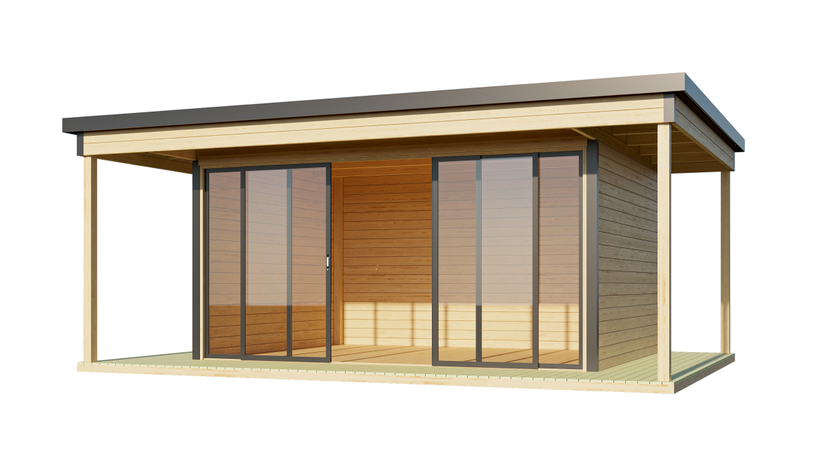 Gestalten Sie den perfekten Raum für Arbeit, Entspannung oder Wellness direkt in Ihrem Garten. Das luxuriöse Holz-Gartenbüro Domeo 4v2 ist die perfekte Wahl für diejenigen, die ein modernes, funktionales und ästhetisches Gartenhaus suchen!