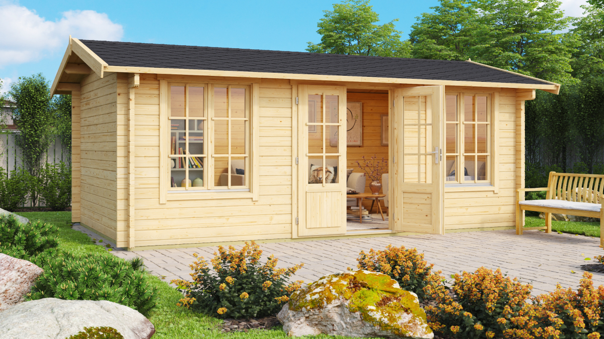 Das Gartenhaus Pembrokeshire ist ein größeres Gartenhausmodell in der Ausführung mit 44 mm Wandstärke. Das Produkt bietet eine hochwertige Verarbeitung. Die 44 mm starken Wände stellen eine besonders attraktive Lösung für den Gartenbau dar. Diese Wandstärke ist ideal für die Größe der Hütte, die 12,78 m² Innenraum bietet. Bei diesem Gartenhaus werden Sie die praktischen Doppeltüren schätzen, die die Nutzung des Hauses erleichtern. Das Gartenhaus Pembrokeshire ist ideal geeignet, um einen gemütlichen Rückzugsort für Ihre Familie zu schaffen, aber auch als Sommerküche oder gelegentlicher Schlafplatz – besonders in den Frühlings- und Sommermonaten. Das Gartenhaus kann auch als saisonales Büro oder Verkaufsraum verwendet werden. Es wird aus vorgetrocknetem nordischem Fichtenholz gefertigt. Zum Lieferumfang gehören Fenster, Doppeltüren, Beschläge, Fußboden und ein Schloss mit Schlüssel.