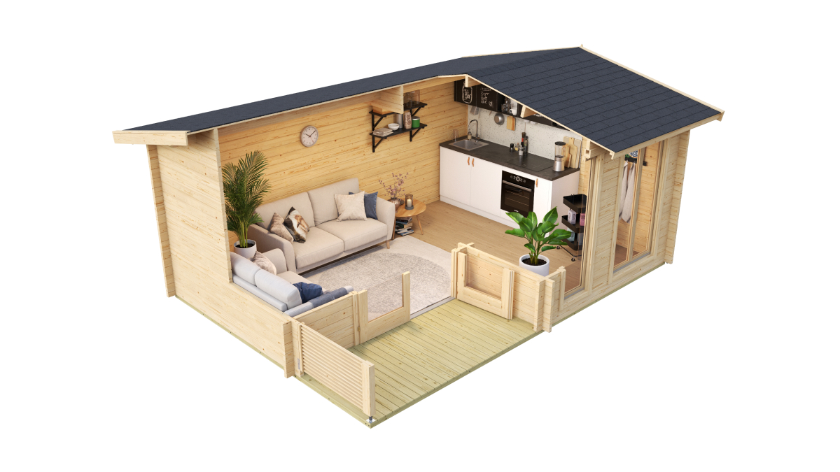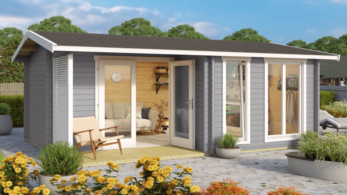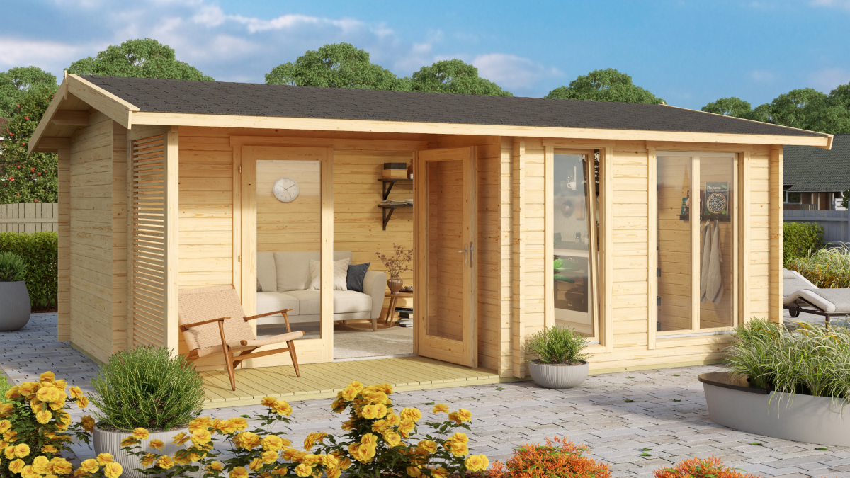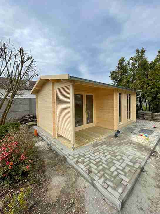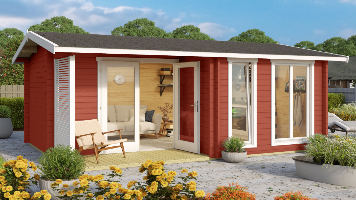 Moderner Gartenhaus Brighton ist eine Gartenhütte für anspruchsvolle Kunden in einer Wandstärke von 44 mm. Das Gartenhaus kann auch spiegelverkehrt aufgebaut werden – je nachdem, wie es am besten in Ihren Garten passt. Es besteht aus wunderschönem massivem 44 mm Holz, das dem Gebäude ein luxuriöses Aussehen verleiht. Es handelt sich um ein Einraum-Gartenhaus, das auch als Sommerküche oder Büro genutzt werden kann. Große Fenster sorgen für viel Tageslicht im Innenraum. Die Fensterscheiben sind vakuumverglast mit Isolier-Doppelglas. Die Montage ist auch in spiegelverkehrter Ausführung möglich.