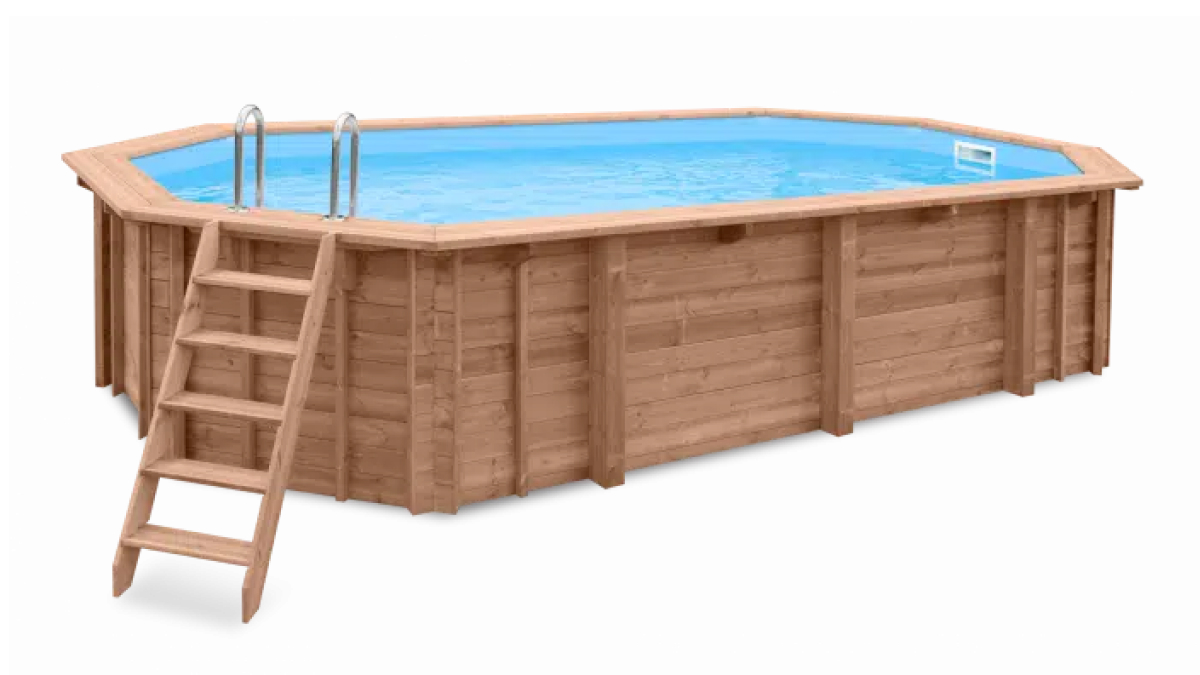 Montierter Pool Edenn in länglicher Form ist – wie auch seine weiteren Poolversionen – mit effektvollen Eckwänden abgeschlossen. Die Serie vollwertiger Pools eignet sich ideal für den täglichen sportlichen Einsatz, sowohl für sportlich Aktive als auch für Freizeitschwimmer. Mit seiner Länge von 698 cm und einer wirklich großzügigen Breite von 4676 cm eignet er sich bei einer Tiefe von 138 cm perfekt als vollwertiger Pool, insbesondere für das tägliche konditionelle Freizeitschwimmen. Das Blockhaus-Skelett des Pools besteht traditionell aus ausgewähltem skandinavischem Holz – Kiefer. Die bewährte achteckige Form mit langen Mittelwänden bietet ausreichend Platz für Ihre Schwimmtrainings und Unterhaltung für Ihre Kinder. Auch der Preis des Pools bleibt sehr günstig. Es handelt sich weiterhin um eine der preislich sehr attraktiven Lösungen für das Schwimmen und Baden zu Hause.